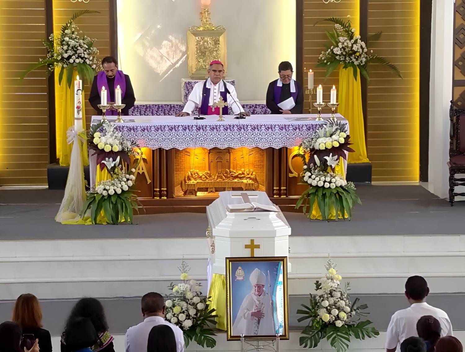Peti jenazah Uskup Emeritus Keuskupan Agung Kupang Sudah Tiba di Gereja Katolik Kristus Raja Katedral Kupang.
