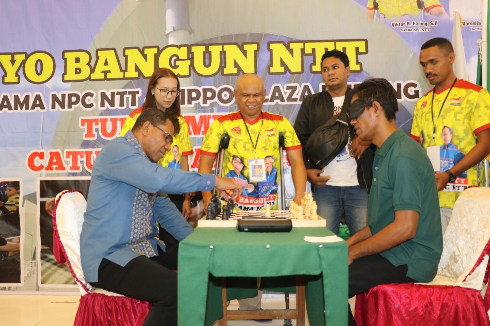 Turnamen catur tunanetra bertajuk ‘Ayo Bangun NTT ‘ ini dibuka secara simbolik dengan pertandingan catur bersama antara Wakil Gubernur NTT dengan Atlet Catur Tunanetra, Semi Kila.