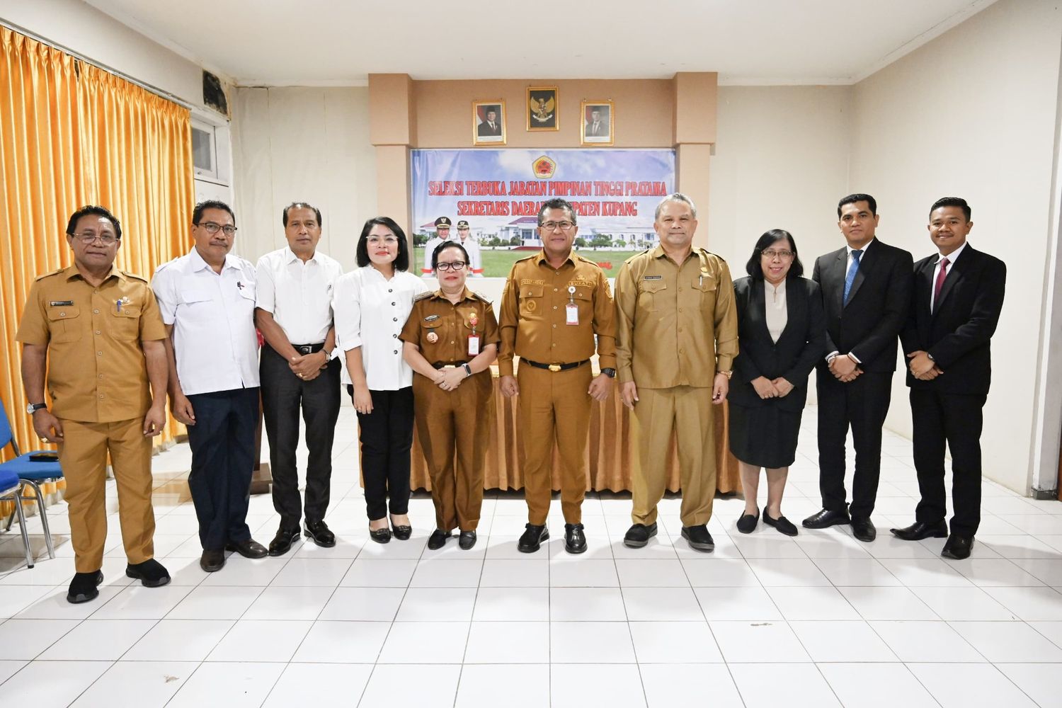 Turut hadir dalam kesempatan tersebut, Ketua Tim Penilai Kompetensi Asesmen Seleksi Terbuka Sekretaris Daerah Kabupaten Kupang, Agnes Ina Odjan, dan 9 orang peserta seleksi yaitu, Adriel Abineno, Guntur Subu Taopan, Juhardi Selan, Lagabus Pian, Marthen Rahakbauw, Mateldius Sanam, Novita Foenay, Robert Amaheka, dan Screning Dano.