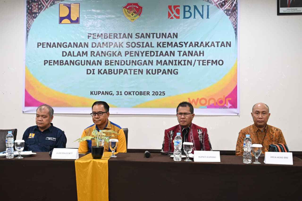 Kepada warga terdampak pembangunan Bendungan Manikin/Tefmo menerima santunan dari Kementerian Pekerjaaan Umum RI, khususnya Balai Besar Wilayah Sungai Nusa Tenggara (BBWS NT) II bekerjasama dengan mitra pembayar Bank Negara Indonesia.