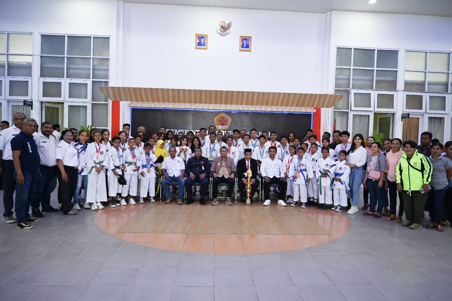 Oelamasi, TIRILOLOKNEWS.COM || REGIONAL – Bupati Kupang, Yosef Lede, Rabu (27/8/2025), di ruang rapat Bupati di Kantor Bupati Kupang, Oelamasi, menerima kontingen Shorinji Kempo Kabupaten Kupang, yang baru pulang berlaga di Kejurda Kempo Piala Bupati Belu, 21 – 23 Agustus 2025 yang lalu, yang digelar di GOR La Bone, Atambua, Belu.