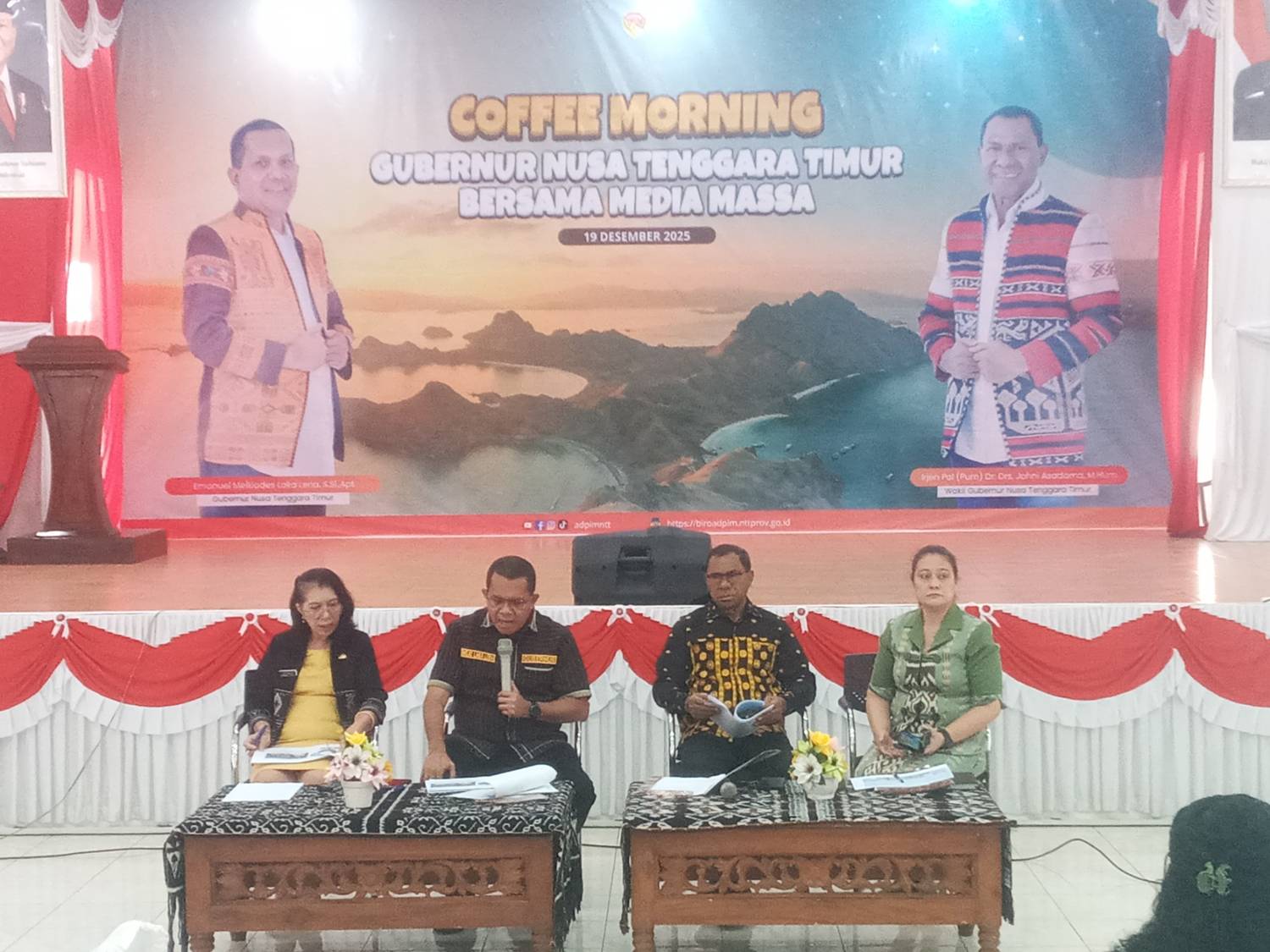 Kota Kupang, TIRILOLOKNEWS.COM || REGIONAL – Gubernur Nusa Tenggara Timur (NTT), Emanuel Melkiades Laka Lena bersama Wakil Gubernur NTT, Johni Asadoma menghadiri kegiatan Coffee Morning yang digelar di Aula Rumah Jabatan Gubernur NTT, Jumat, (19/12/2025). Kegiatan ini menjadi ruang pemaparan capaian dan arah kebijakan Pemerintah Provinsi NTT selama periode Februari hingga Desember 2025.