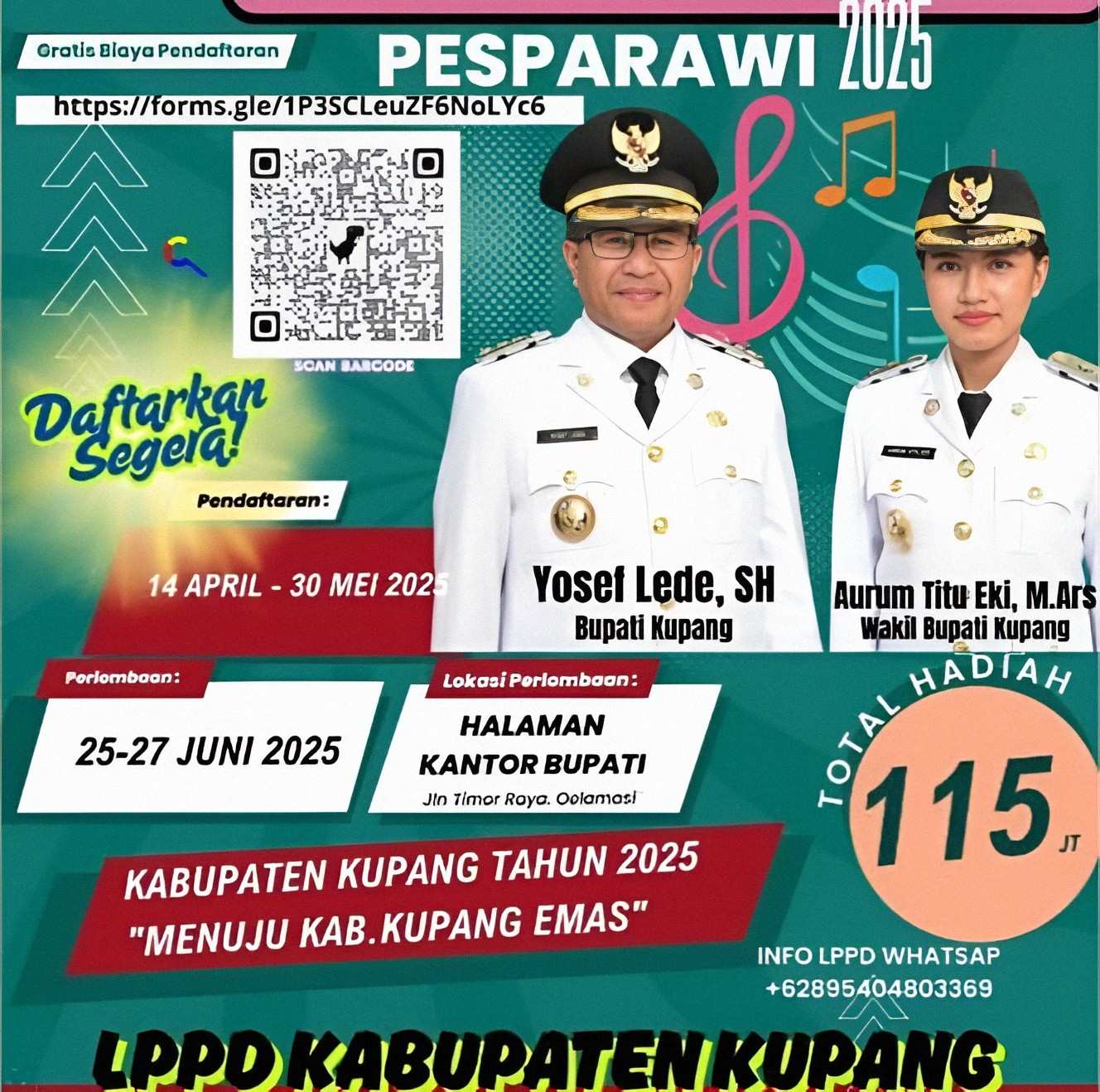 Lanjut dia, pendaftaran peserta Pesparawi Kabupaten Kupang dibuka pada tanggal (15/4) – (30/5/2025) di Sekretariat LPPD II Kabupaten Kupang di Oelamasi pada setiap hari kerja mulai pukul 08.00 – 15.00 WITA. Pendaftaran juga dapat dilakukan melalui kontak person :