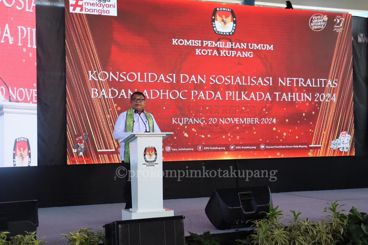 Dalam sambutannya yang mewakili Penjabat Wali Kota Kupang, Fahren menekankan pentingnya menjaga netralitas dalam penyelenggaraan Pemilu, ia menegaskan bahwa integritas dan kepercayaan masyarakat menjadi hal utama yang harus dijaga. “Badan Ad hoc memiliki kewajiban untuk menjaga netralitas. Jangan sampai ada keberpihakan atau upaya yang mencederai prinsip demokrasi,” ujarnya. Fahren turut mengingatkan bahwa keberhasilan Pemilu dan Pilkada yang aman, jujur, adil, dan demokratis sangat bergantung pada kesiapan teknis dan logistik, serta peningkatan partisipasi masyarakat.