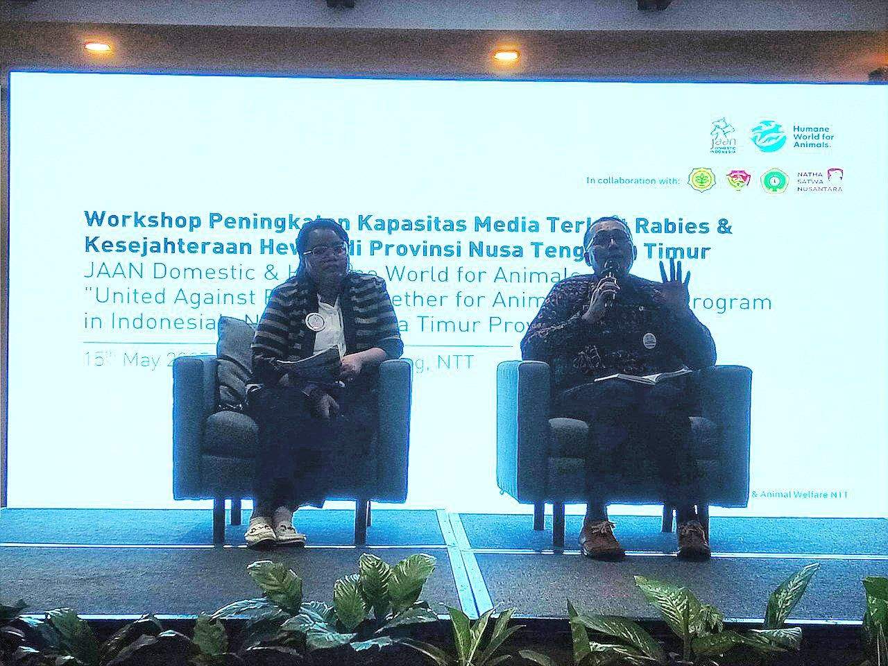 Konferensi pers yang dihadiri oleh 32 jurnalis dari berbagai media di Nusa Tenggara Timur sebagai bagian dari upaya membangun kolaborasi komunikasi yang efektif dalam menyuarakan isu rabies dan kesejahteraan hewan di daerah tersebut.