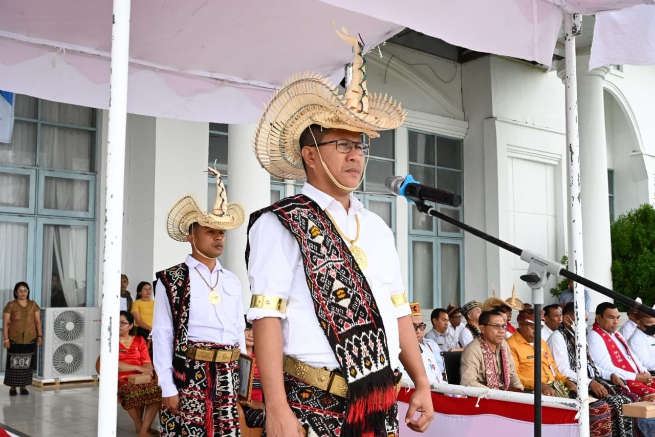 Bupati Kupang Yosef Lede selaku Pembina Upacara dalam amanatnya menyampaikan pesan Menteri Kependudukan dan Pembangunan Keluarga/ Kepala Badan Kependudukan dan Keluarga Berencana Nasional RI, Dr.Wihaji, S.Ag., M.Pd.