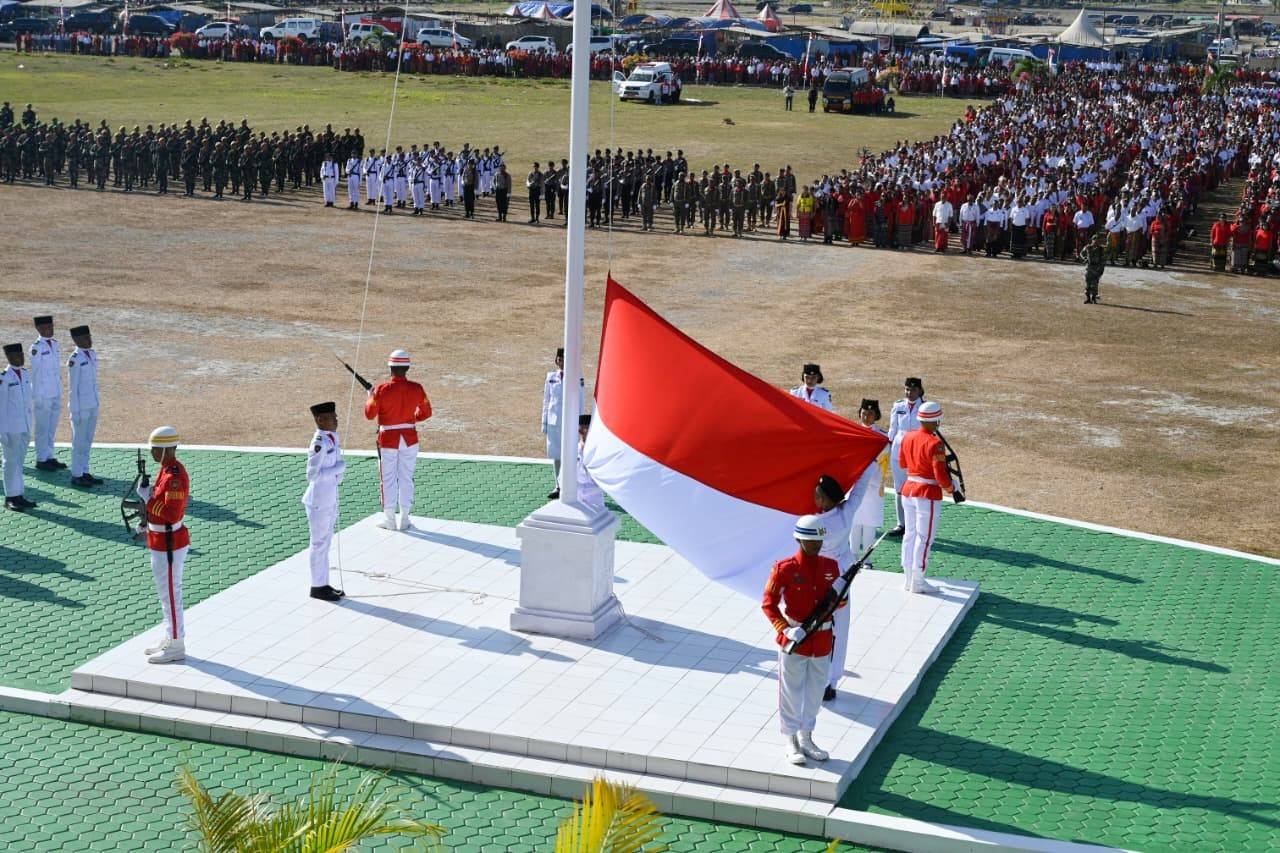 Bupati Yosef Lede dalam pidatonya menyatakan, sesuai tema HUT Kemerdekaan RI ke 80 Tahun 2025 “Bersatu Berdaulat, Rakyat Sejahtera, Indonesia Maju” mencerminkan arah perjuangan dan visi Bangsa Indonesia kedepan. Bersatu berdaulat menggambarkan semangat Bangsa Indonesia yang menjunjung tinggi kerukunan dan gotong royong dalam menjaga kedaulatan negara.