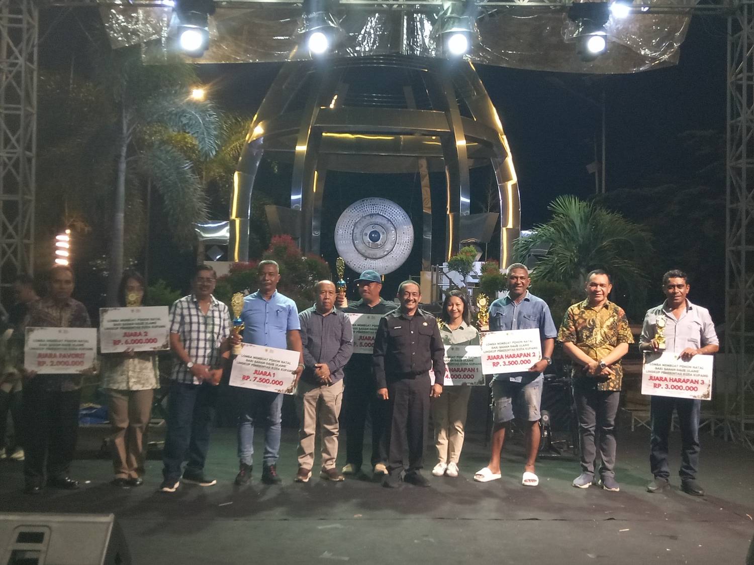 Kegiatan dilanjutkan dengan pengumuman pemenang lomba. Juara I Lomba Hias Pohon Natal 2025 diraih Kecamatan Oebobo, sementara Juara Festival Kelurahan Tingkat Kota Kupang 2025 diraih Kelurahan Naikoten I. Acara juga dirangkaikan dengan Launching Aplikasi PBB dan PDL Kota Kupang oleh Bank Mandiri.