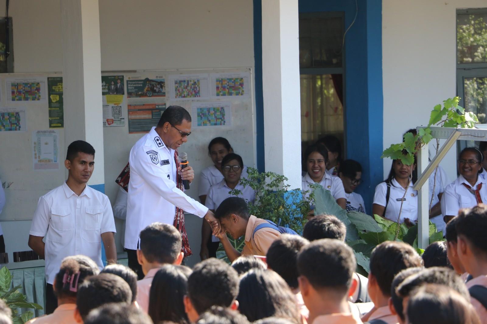 “Manfaatkan peluang Beasiswa Lembaga Pengelola Dana Pendidikan (LPDP) yang disiapkan pemerintah bagi putra-putri berprestasi. Belajar adalah kunci keberhasilan dan tidak mengenal usia, tingkatkan soft skill yaitu disiplin, kemampuan membangun team work, kemampuan berinovasi dan berkreasi. Siapkan diri dari sekarang agar tidak ada penyesalan di masa mendatang. Disamping itu jadilah pribadi yang disiplin, patuhi aturan, hormati guru dan orang tua merupakan kewajiban yang patut kita laksanakan,” tegas Wakil Gubernur Johni Asadoma.