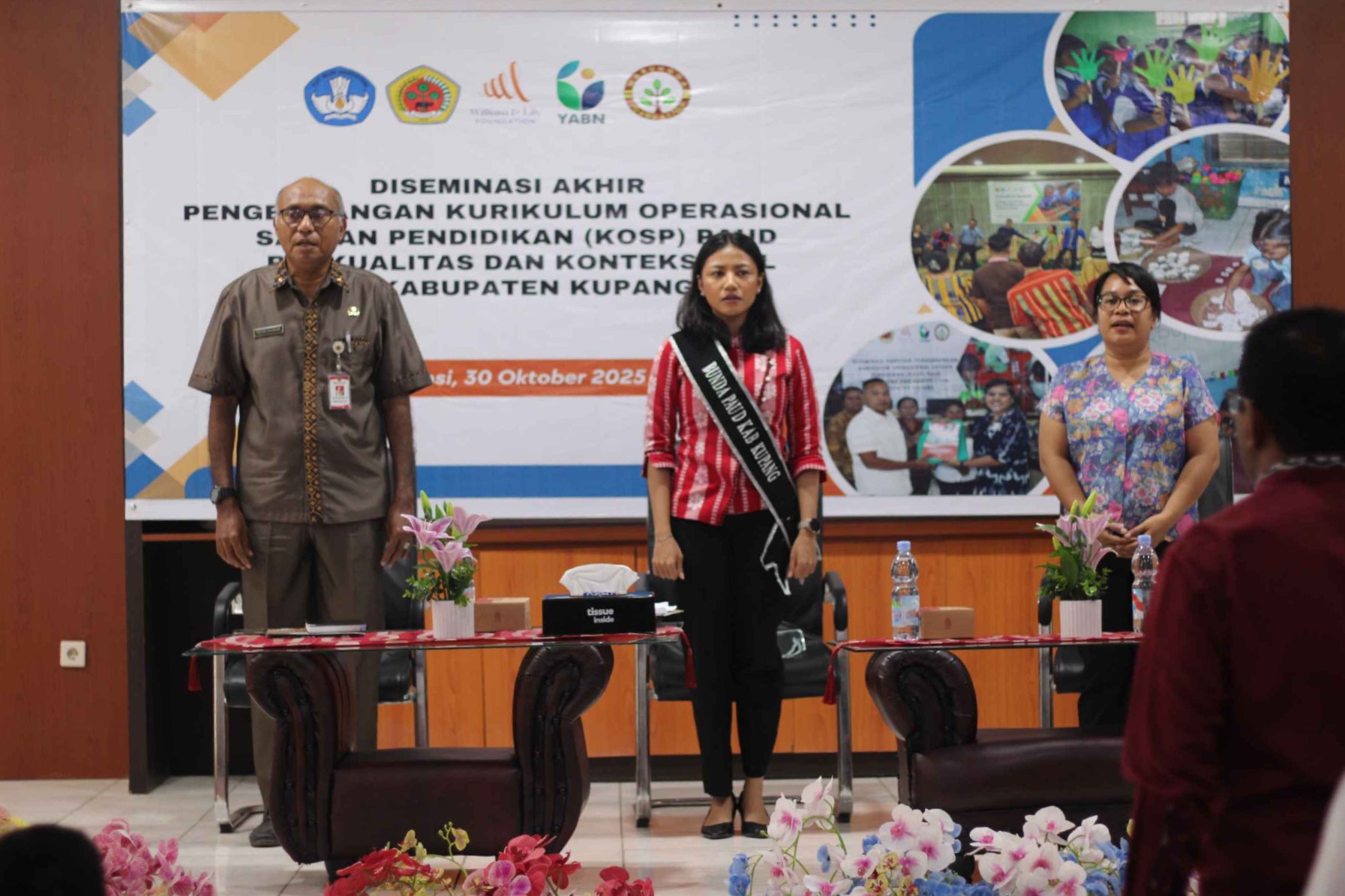 Oelamasi, TIRILOLOKNEWS.COM || REGIONAL – Wakil Bupati Kupang yang juga Bunda PAUD Kabupaten Kupang, Aurum Titu Eki, secara resmi membuka kegiatan “Diseminasi Akhir Pengembangan Kurikulum Operasional Satuan Pendidikan (KOSP) PAUD Berkualitas dan Kontekstual Kabupaten Kupang”, Kamis (30/10/2025) pagi, di Aula Kantor Bupati Kupang.