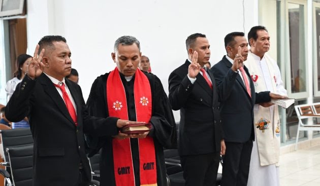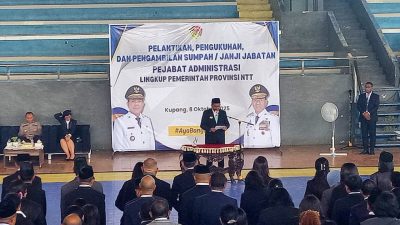 Oelamasi, TIRILOLOKNEWS.COM || REGIONAL – Wakil Bupati Kupang, Aurum Titu Eki, akhir pekan yang lalu melantik Johny Taek sebagai Dewan Pengawas PDAM Kabupaten Kupang, dan Siprianus Klau dan Jeremias Sunitram Noni Mone, sebagai Staf Khusus Bupati Kupang, di aula Kantor Bupati Kupang, Oelamasi.