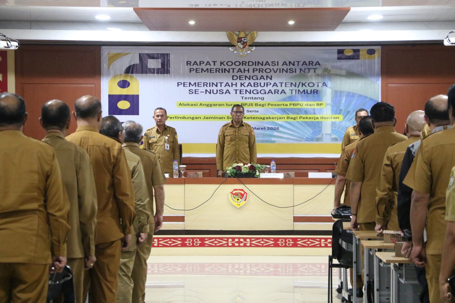 Rapat yang berlangsung di Aula Fernandez Kantor Gubernur NTT pada Senin (9/3/2026) tersebut, dihadiri para Sekretaris Daerah Kabupaten/Kota se-NTT, perangkat daerah terkait dari tingkat provinsi dan kabupaten/kota, serta perwakilan BPJS Kesehatan dan BPJS Ketenagakerjaan.
