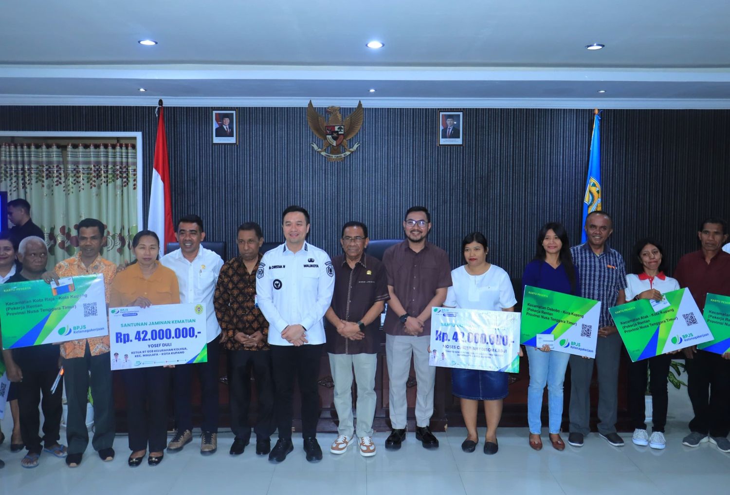 Sementara itu, penerima simbolis kartu BPJS Ketenagakerjaan dan buku rekening Bank NTT antara lain Jonathan Agustinus Tali dan Juneidi Alimi dari Kecamatan Kelapa Lima, Onanda Laurina Koby dan Doris Masang Nenu dari Kecamatan Alak, Susilowati dari Kecamatan Oebobo, Muhamad Yunus dan Cornelis Pulangga dari Kecamatan Kota Lama, Jitron Arisamak Taklale dari Kecamatan Kota Raja, serta Agustinus Tana dan Apriana Tanaale dari Kecamatan Maulafa.