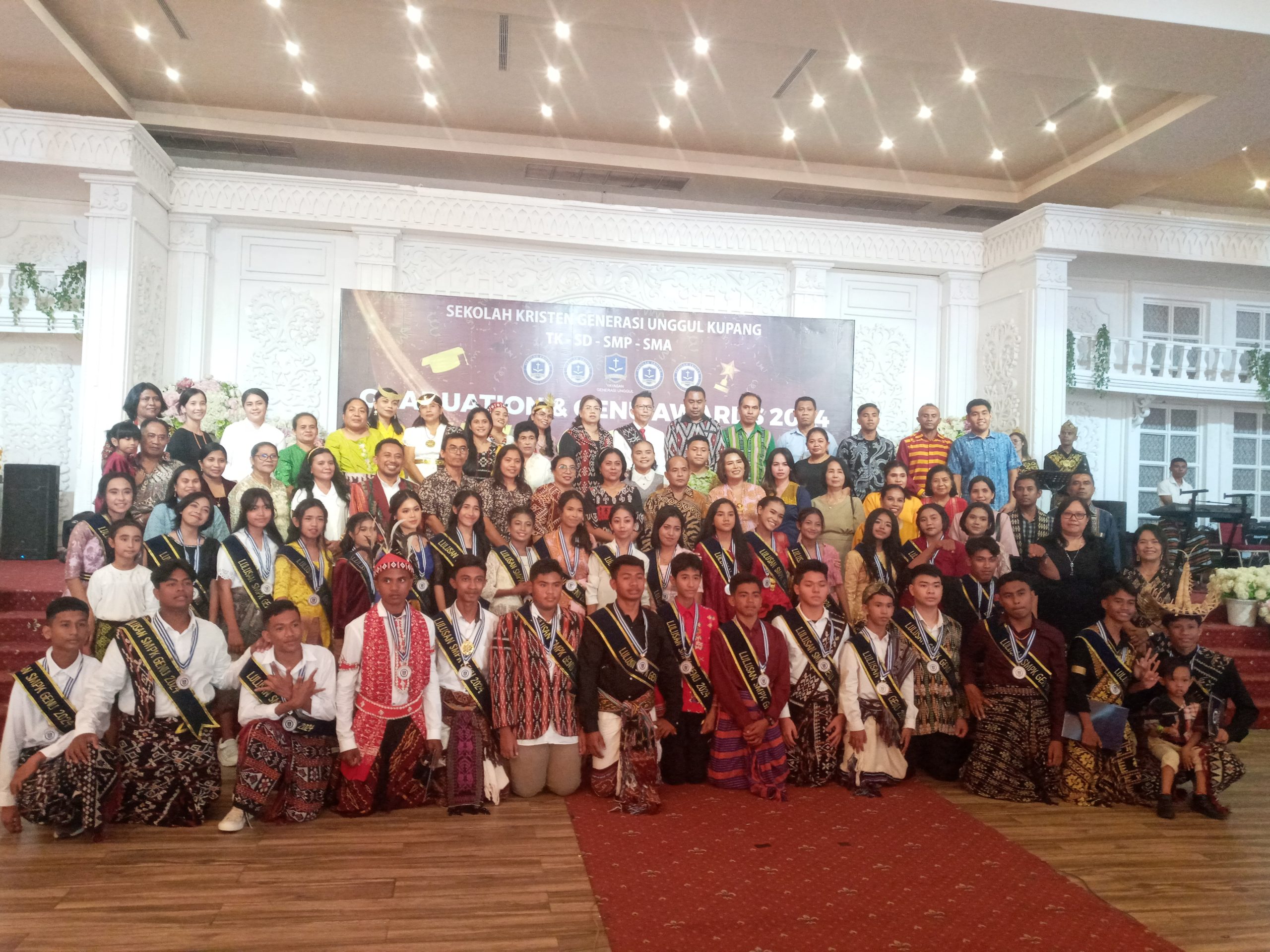 Kota Kupang, TIRILOLOKNEWS.COM || REGIONAL – Sekolah Kristen Generasi Unggul (GENU) melaksanakan acara wisuda sebanyak 144 siswa dengan tema “Mempersiapkan Generasi Kudus untuk Menyatakan ALLAH yang Hidup (Imago Dei)” dan GENU Awards di Millennium Ballroom Kupang pada Selasa (18/6/2024).